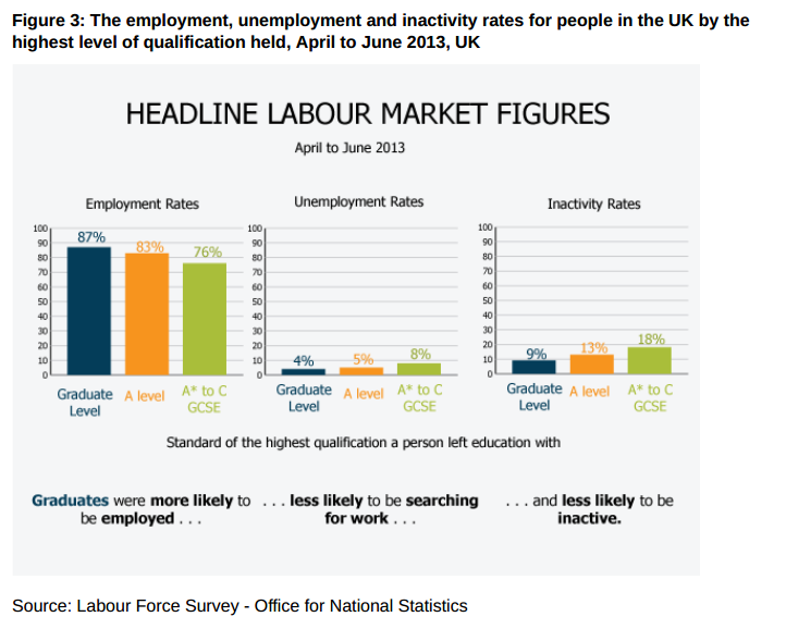 Chart taken from a report on ‘Graduates in the UK Labour Market 2013’, Office for National Statistics, 19 November 2013, <http://www.ons.gov.uk/ons/dcp171776_337841.pdf> [accessed 9 December 2014]
